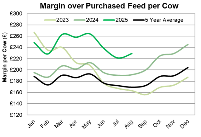 Analysis from Kingshay’s dairy costings service for August 2025 highlights continued positive performance trends, with improved margins per cow driven by stronger milk prices, and lower purchased feed costs.